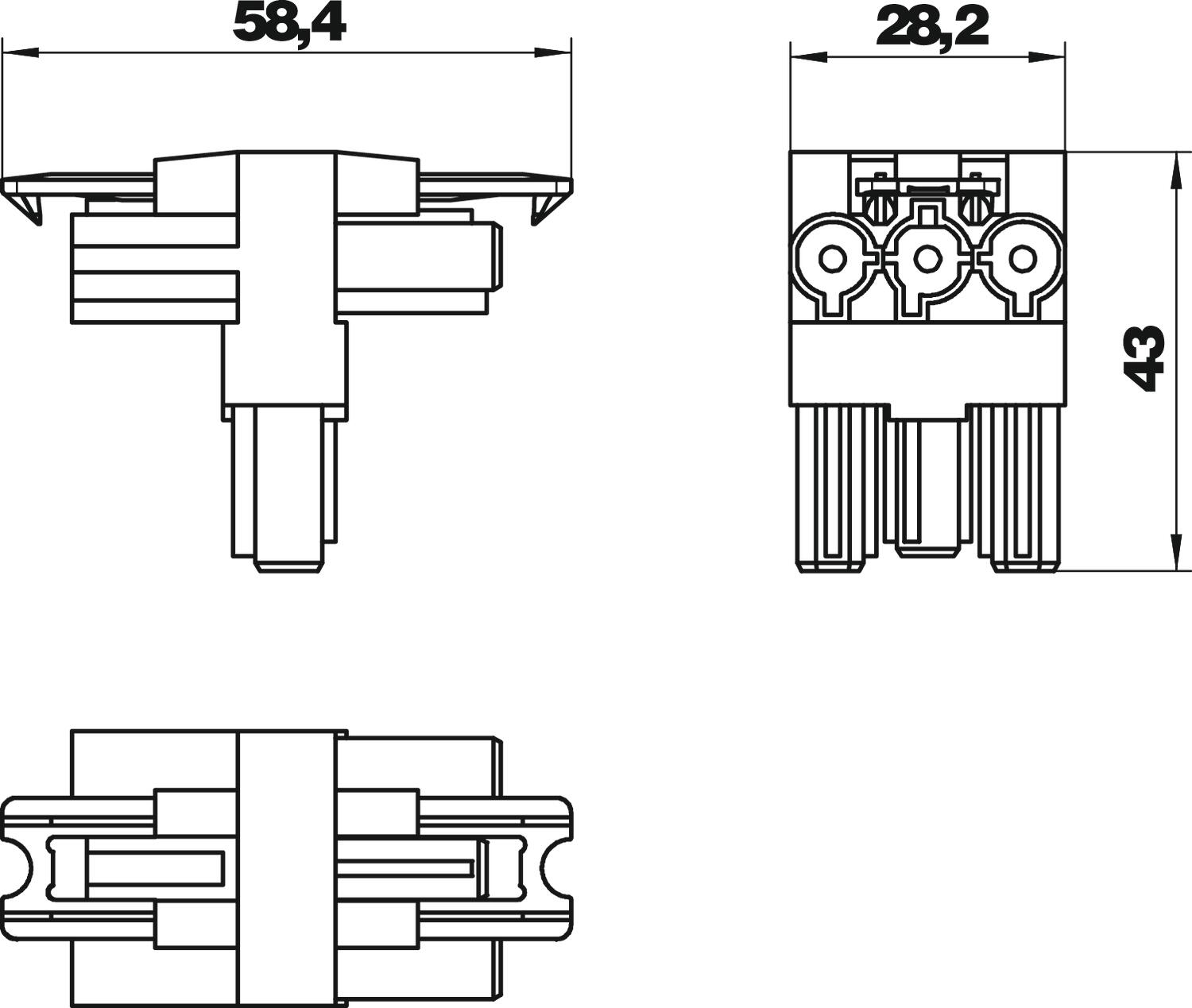 Product descriptionT distributor with lock, type GST18i, one input with 3-pin connector part and two outputs with 3-pin socket part.