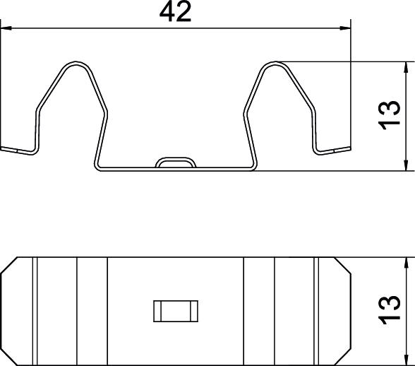 Adjustable connector, horizontal no Articulated connector, vertical no CO2 Footprint (GWP) Cradle-to-Gate 0,0178 kg CO2e / 1 Piece Colour stainless steel Connection type Screwless connector Dimension 42x13x13 Height 13 mm Length 42 mm Maintain electrical functions no Material Stainless steel 1.4310 Material thickness 0,4 mm Permitted temperature range, max. 120 °C Permitted temperature range, min. -20 °C Profile shape Miscellaneous Rustproof steel, pickled yes Suitable for cable ladder no Suitable for cable tray yes Suitable for mesh cable tray no Suitable for profile shapes Miscellaneous Surface Bright, treated Width 13 mm - All types