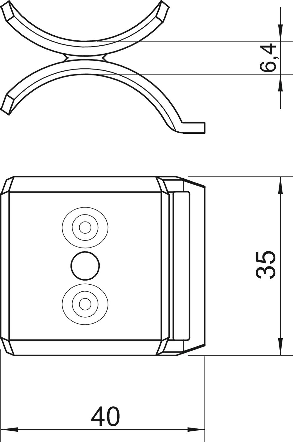 Clamping range D, max. 34 mm Clamping range D, min. 28 mm CO2 Footprint (GWP) Cradle-to-Gate 0,3189 kg CO2e / 1 Piece Counter-trough/clip version Double trough Dimension 28-34mm Dimension B 40 mm Dimension H 6,4 mm Dimension L 35 mm Material Stainless steel 1.4301 Suitable for max. cable diameter 34 mm Surface Bright, treated - All types