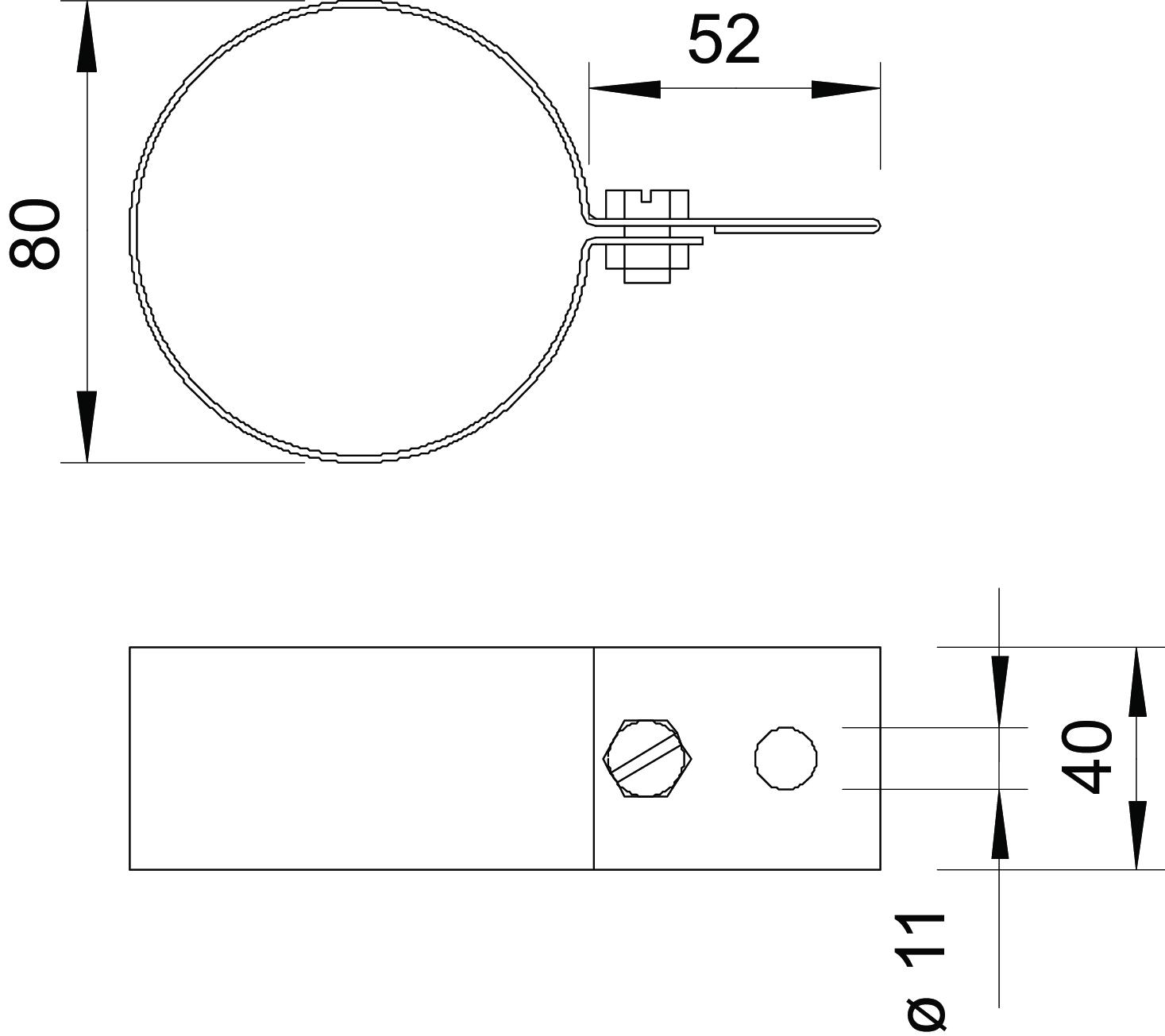 Bimetal connector no Clamping range, min. 80 mm CO2 Footprint (GWP) Cradle-to-Gate 0,3655 kg CO2e / 1 Piece Connection hole 11 mm Dimension 80mm Dimension d min. 80 mm explosion-proof no Integrated round conductor guide no Material Steel Surface Strip galvanized - All types