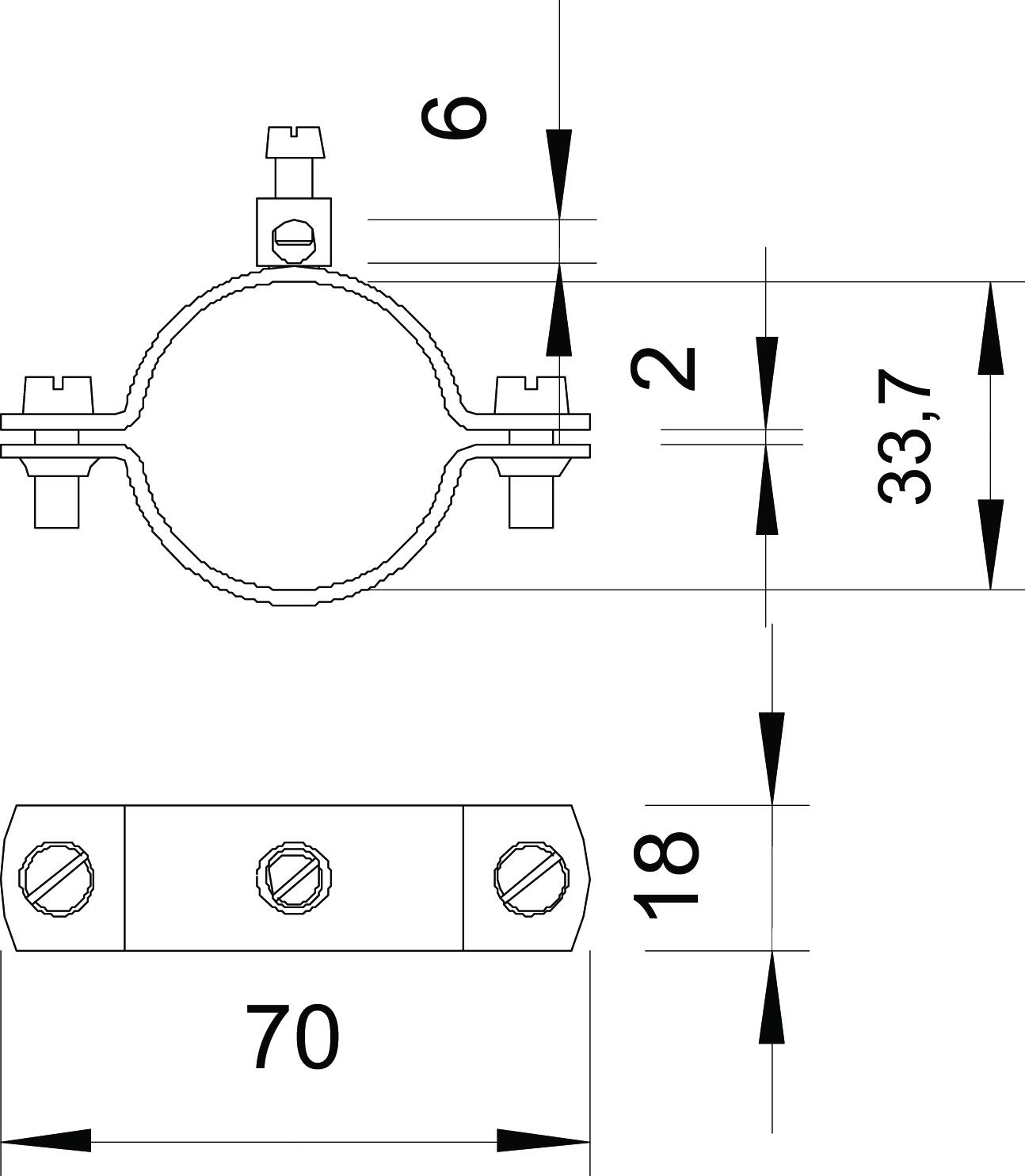 Clamping range D 1 Clamping range D, max. 33,7 mm Clamping range D, min. 31,7 mm CO2 Footprint (GWP) Cradle-to-Gate 0,1332 kg CO2e / 1 Piece Cross-section of cable to be connected, max. 16 mm² Dimension 1" Dimension A 70 mm Dimension b 18 mm Dimension D 33,7 mm Dimension X 2 mm Material Steel Number of conductors 1 Surface Electrogalvanized - All types