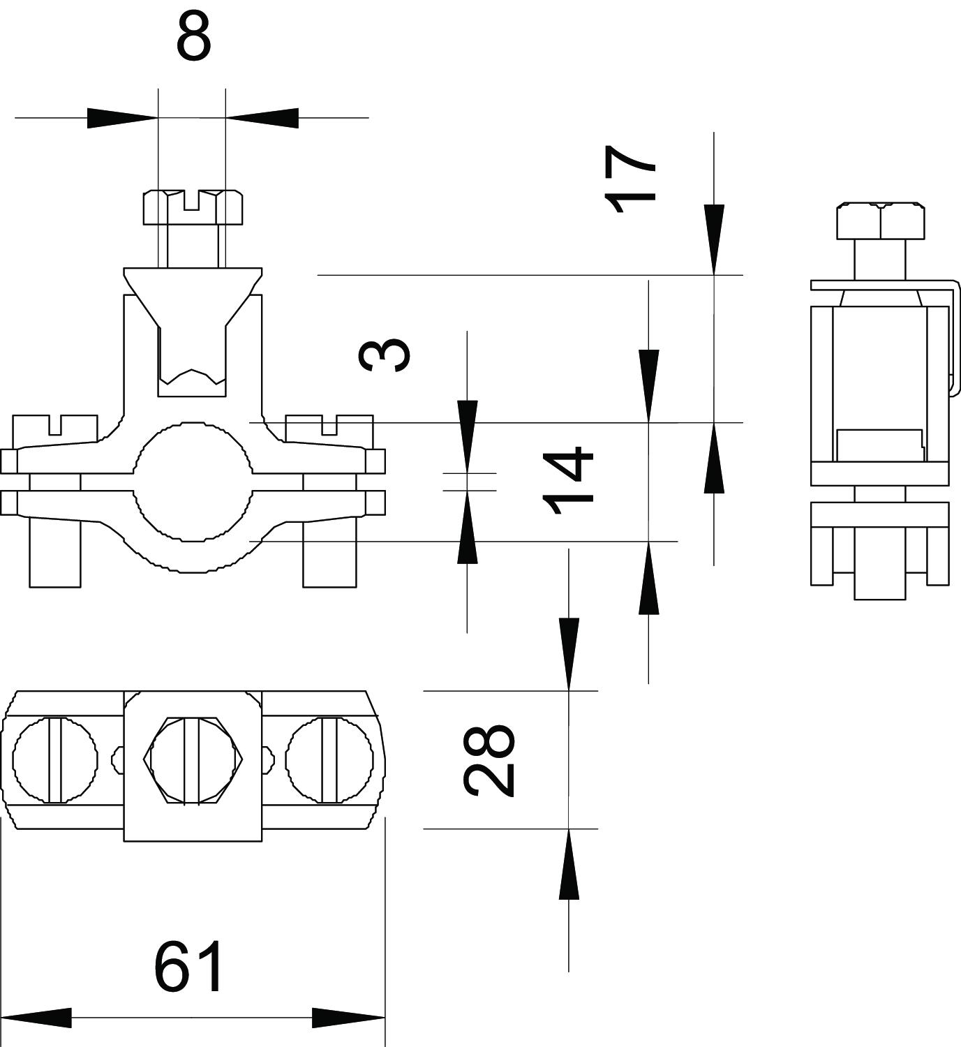 • With captive pressure strip, 2 cylinder bolts M6 x 16 and 1 hex-head screw M6 x 16