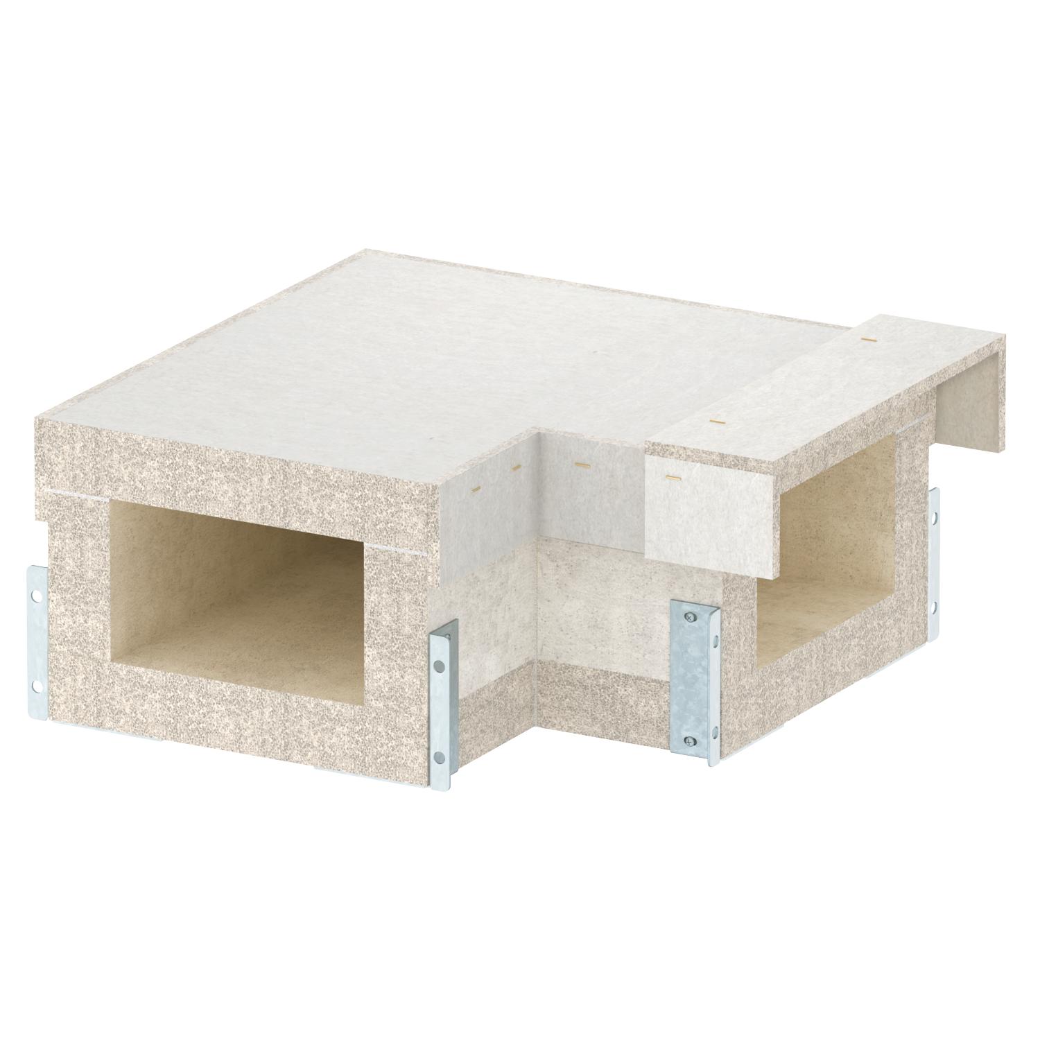 Product description90° bend for PYROLINE® Con S EI90 fire protection duct, type PLCS D091220, consisting of fibreglass light concrete which is resistant to water and frost for the creation of horizontal changes of direction in the duct. Mounted connectors ensure quick mounting in situ, whilst loosely placed covers ensure quick inspection and reassignment.