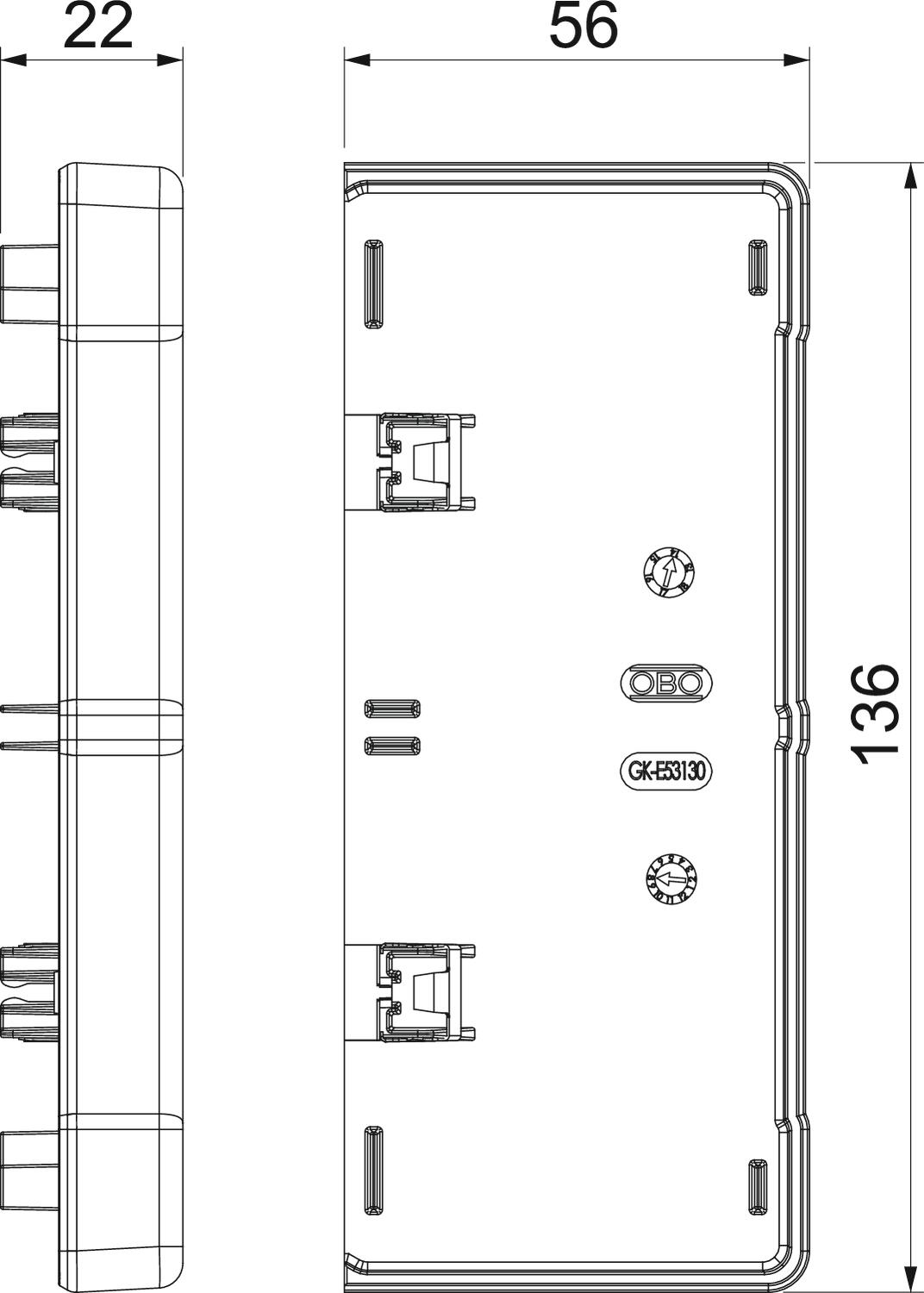 Antibacterial treatment no CO2 Footprint (GWP) Cradle-to-Gate 0,226 kg CO2e / 1 Piece Colour Pure white; RAL 9010 Cut lamination yes Dimension 136x56x22 Fastening type Lockable for duct width 130 mm for trunking height 53 mm Halogen-free yes Height 56 mm Length 22 mm Material Polycarbonate/Acrylnitrile-butadiene-styrene Permitted temperature range, max. 60 °C Permitted temperature range, min. -15 °C Protection rating IP40 Protection rating IK code IK08 Protective film no Suitable for Left/right Version for Symmetrical Width 136 mm - All types