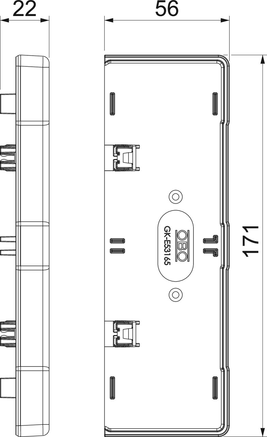 Product descriptionEnd piece for side closing of the Rapid 45-2 GK and GA 53165 device installation trunking.