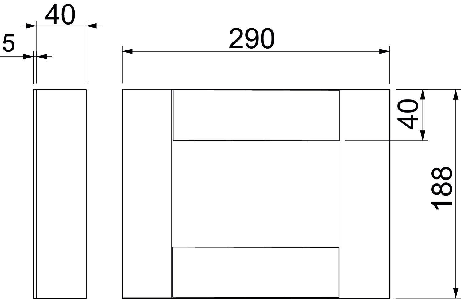 Colour Grey Dimension 102x210 Dimension A 40 mm Dimension B 290 mm Dimension H 188 mm Dimension L 40 mm Fire resistance class E − function maintenance 30 Fire resistance class I − installation duct 90 Height 188 mm Jacketing Without Length 40 mm Material Fibreglass lightweight concrete Material of the insulation Glass-fibre lightweight concrete Number of flammable sides 4 Version for Left/right Width 290 mm - All types