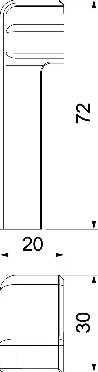 CO2 Footprint (GWP) Cradle-to-Gate 0,031 kg CO2e / 1 Piece Colour Pure white; RAL 9010 Cover sealing lip Without Decoration Without Halogen-free no Height 72 mm Length 30 mm Material Polyvinylchloride Permitted temperature range, max. 60 °C Permitted temperature range, min. -5 °C Pre-markings no Protection rating IP40 Protection rating IK code IK06 Version for Right Width 20 mm With carpet strip yes - All types