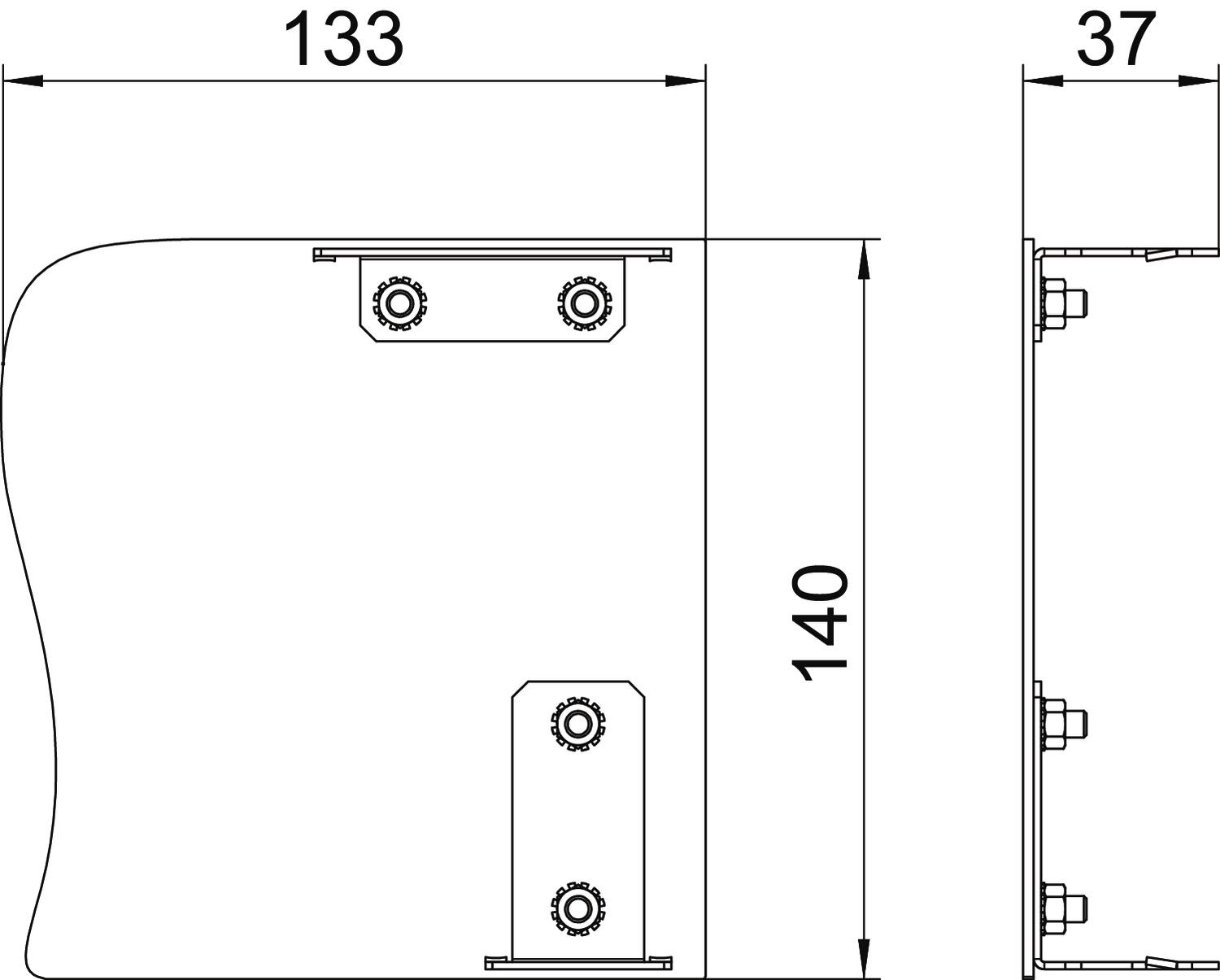 Antibacterial treatment no CO2 Footprint (GWP) Cradle-to-Gate 1,8795 kg CO2e / 1 Piece Colour aluminium Cut lamination no Dimension 133x140x37 Fastening type Lockable for duct width 140 mm for trunking height 114 mm Halogen-free yes Height 133 mm Length 37 mm Material Aluminium Protective film yes Suitable for Left Surface Anodised Version for Asymmetrical Width 140 mm - All types