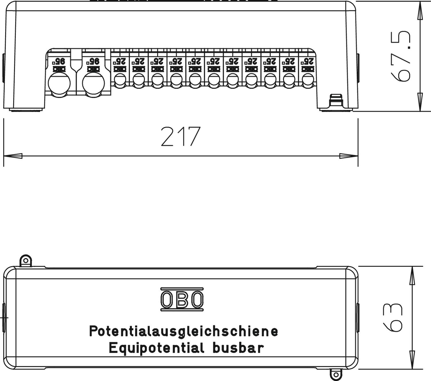Product descriptionEquipotential busbar for equipotential bonding to DIN VDE 0100-410/-540 as well as lightning protection equipotential bonding to DIN VDE 0185-305