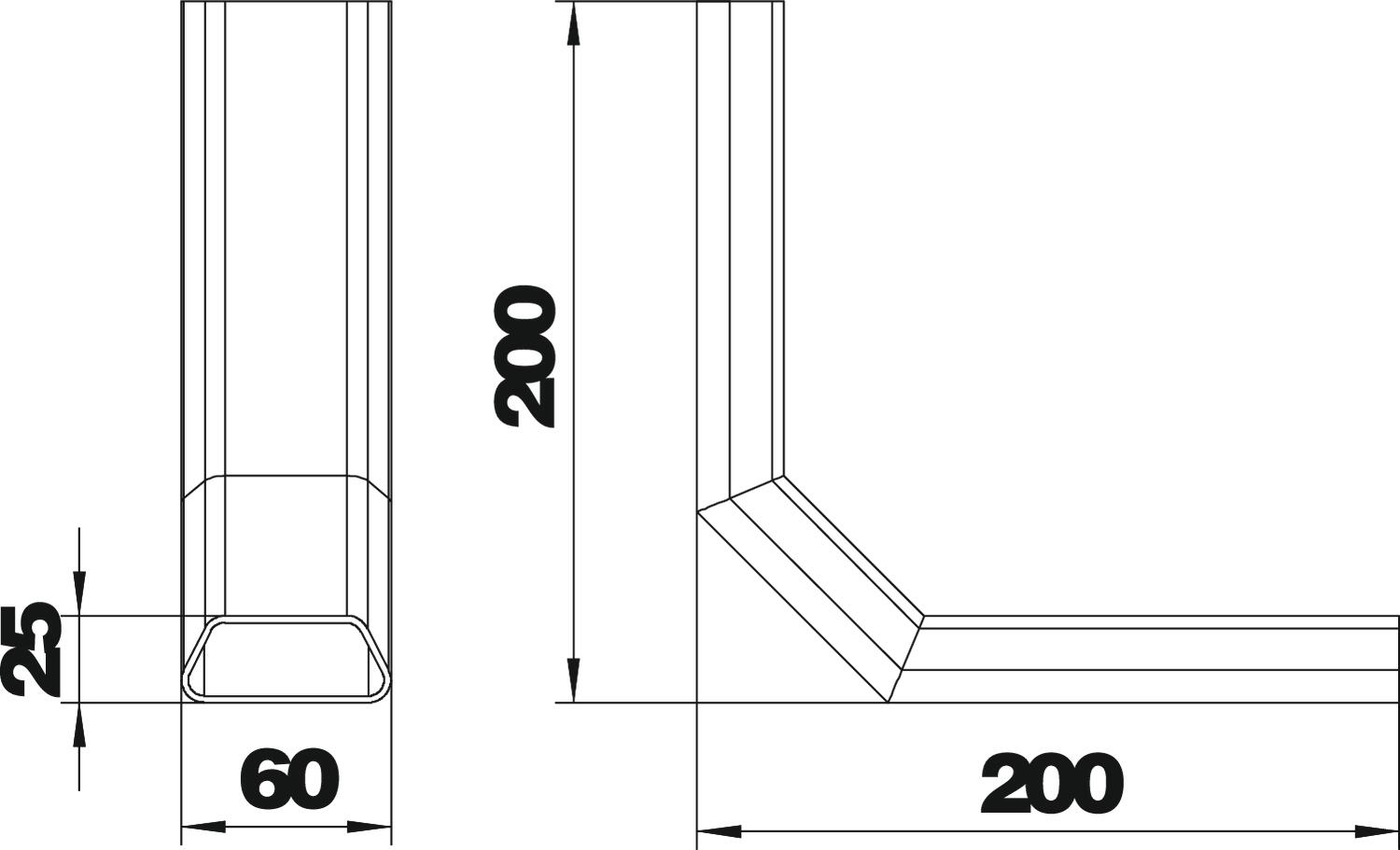 Product descriptionVertical bend, 90°, suitable for duct size 60x25.