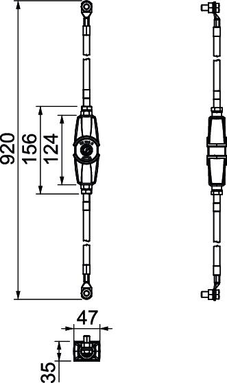 • Connection cable (25 mm2) on both sides, pre-mounted with M10 bolt, lock washer and nut