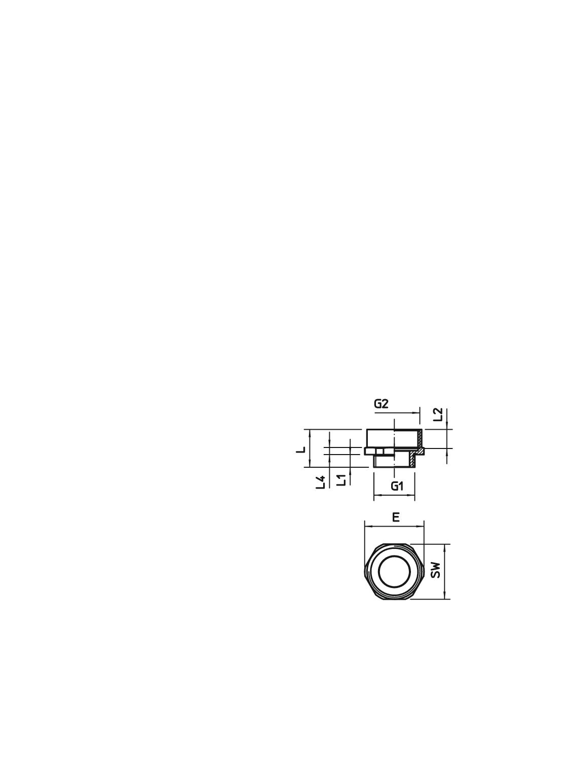 CO2 Footprint (GWP) Cradle-to-Gate 0,1356 kg CO2e / 1 Piece Dimension M32-M40 Dimension D 26 mm Dimension E 45,5 mm Dimension L 23,8 mm Dimension L1 8 mm Dimension L2 10 mm Dimension L4 5 mm explosion-proof no Material Brass Nickel-plated yes Surface Nickel-plated Thread dimension, metric, external 32 Thread dimension, metric, internal 40 Thread type: External thread Metric Thread type: Internal thread Metric WAF 42 - All types