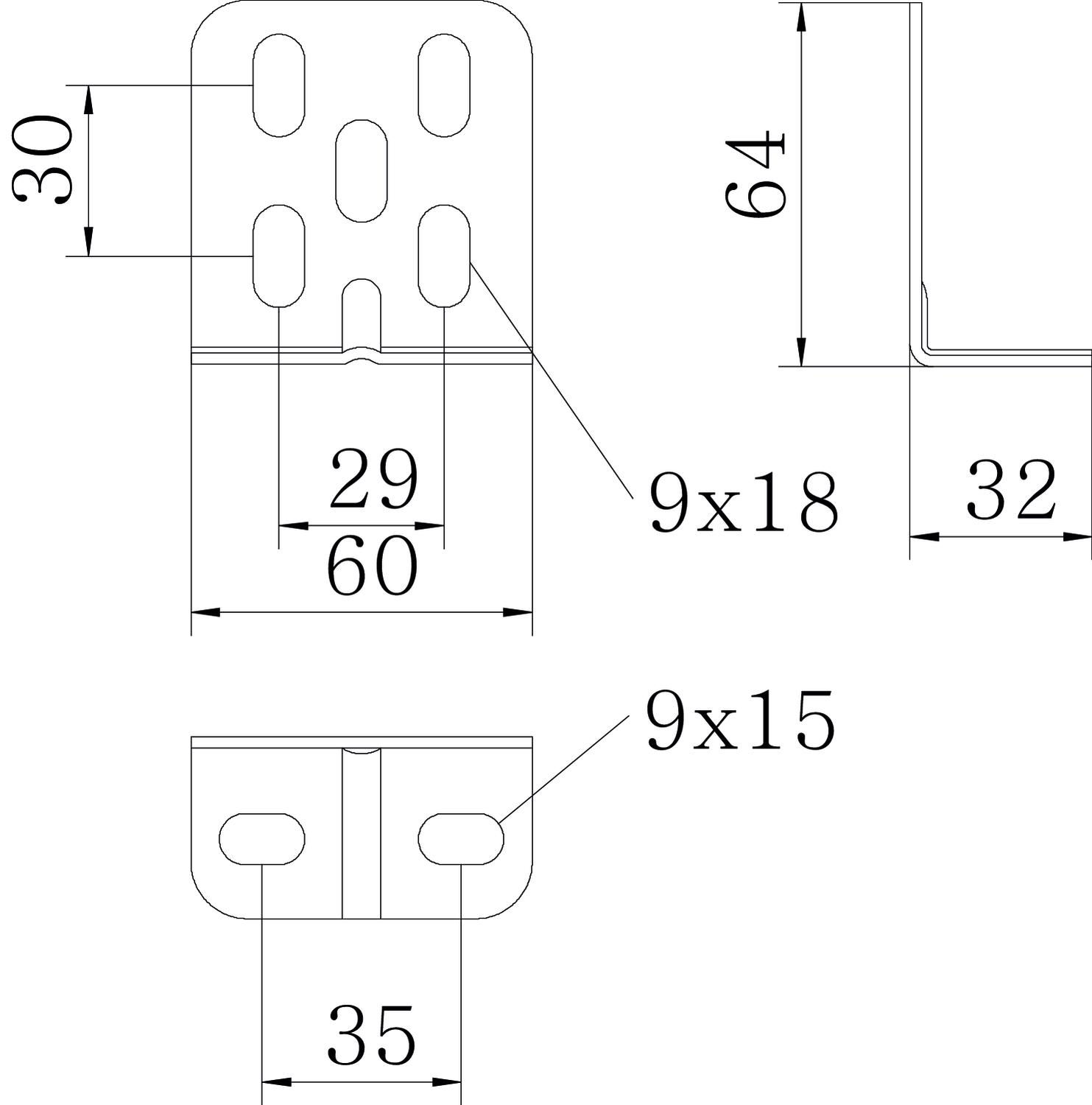 Product descriptionLight-duty fastening bracket of limb dimension 64 x 32 mm.