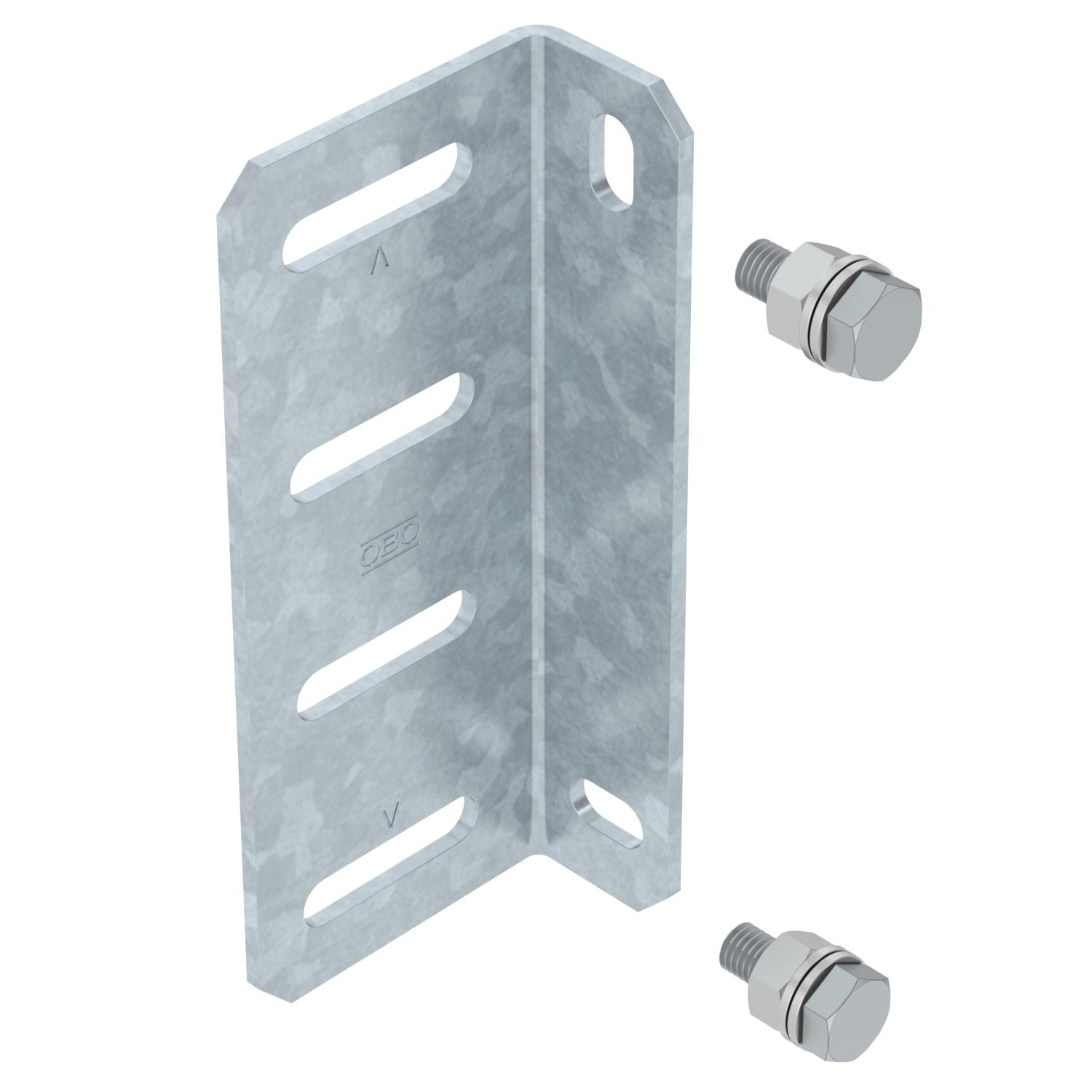 Adjustable yes CO2 Footprint (GWP) Cradle-to-Gate 1,9252 kg CO2e / 1 Piece Colour zinc Dimension 190x80 Height 190 mm Length 80 mm Maintain electrical functions no Material Steel Material thickness 4 mm Suitable for profile shapes U profile Surface Hot-dip galvanised Version for Fastening bracket Width 40 mm With screw accessories yes - All types