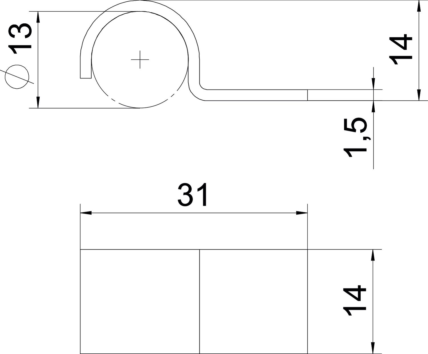 CO2 Footprint (GWP) Cradle-to-Gate 0,0139 kg CO2e / 1 Piece Dimension 13mm Dimension B 14 mm Dimension H 12 mm Dimension L 16 mm Distance to the wall no Fastening type Miscellaneous For diameter 13 Halogen-free yes Height 13,5 mm Length 30,5 mm Material Steel Material thickness 1,5 mm Number of cables/pipes 1 Plastic-covered no Suitable in fire protection area yes Surface Electrogalvanized UV-resistant yes Version for Single-lobe Width 14 mm - All types