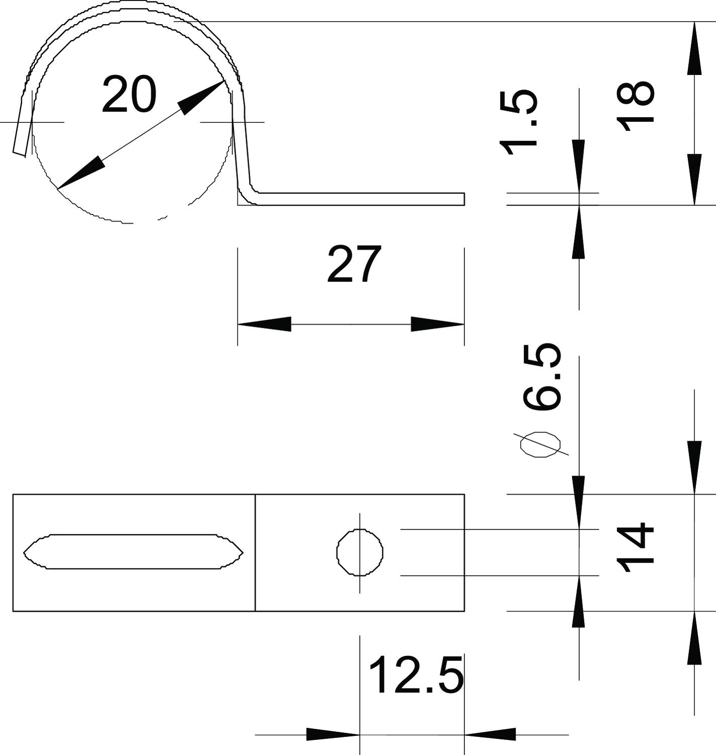 CO2 Footprint (GWP) Cradle-to-Gate 0,018 kg CO2e / 1 Piece Dimension 20mm Dimension D 20 mm Dimension H 18 mm Distance to the wall no Fastening type Screw hole For diameter 20 Halogen-free yes Hole size 6,5 mm Material Steel Material thickness 1,5 mm Nominal diameter 20 mm Number of cables/pipes 1 Plastic-covered no Suitable in fire protection area no Surface Electrogalvanized UV-resistant yes Version for Single-lobe - All types