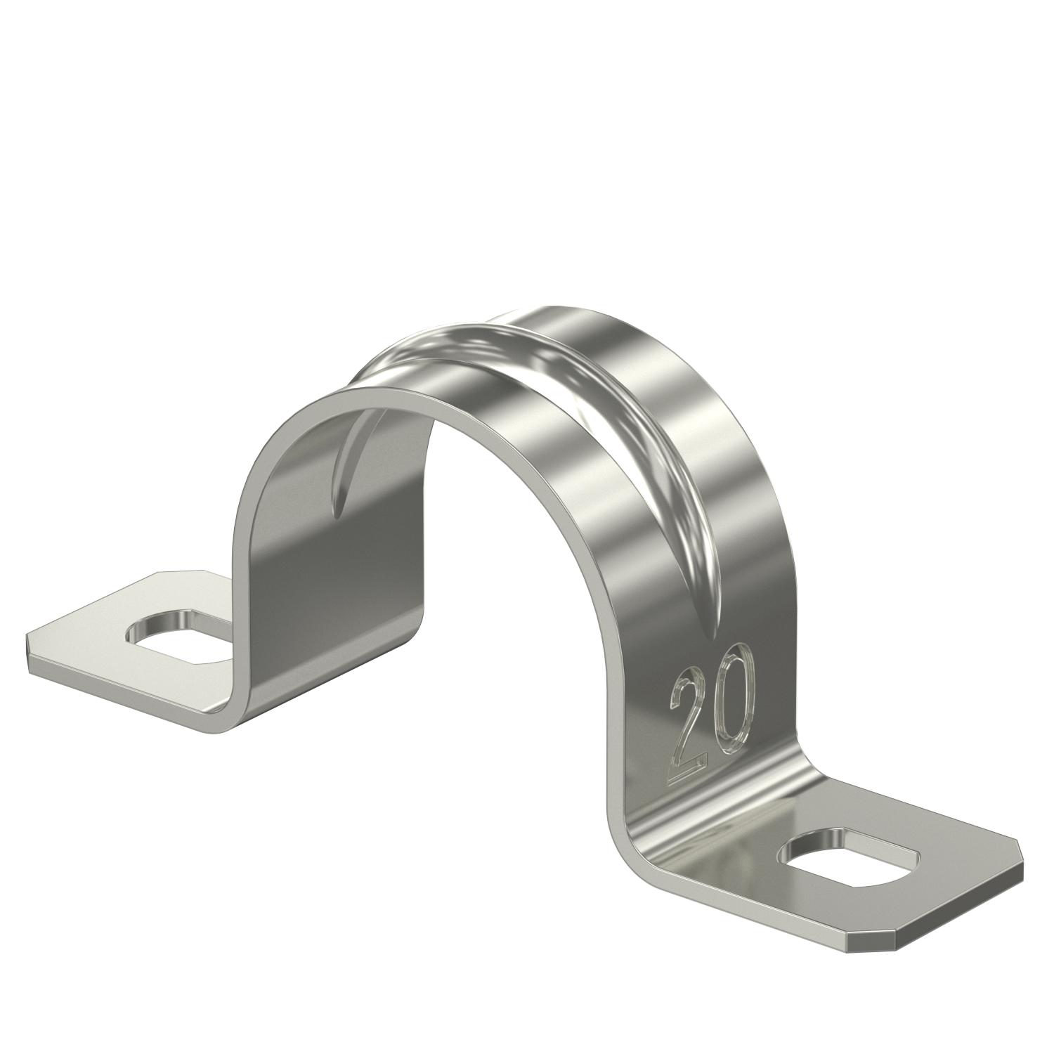 CO2 Footprint (GWP) Cradle-to-Gate 0,0475 kg CO2e / 1 Piece Dimension 20mm Dimension A 49 mm Dimension B 37 mm Dimension b 12 mm Dimension D 20 mm Dimension d 4,5 mm Dimension e 6 mm Dimension H 18,5 mm Dimension t 1 mm Distance to the wall no Fastening type Screw hole For diameter 20 Halogen-free yes Height 18,5 mm Hole size 4,5 x 6 mm Length 49 mm Material Stainless steel 1.4571 Material thickness 1 mm Nominal diameter 20 mm Number of cables/pipes 1 Plastic-covered no Suitable in fire protection area no Surface Bright, treated UV-resistant yes Version for Two-lobe Width 12 mm - All types