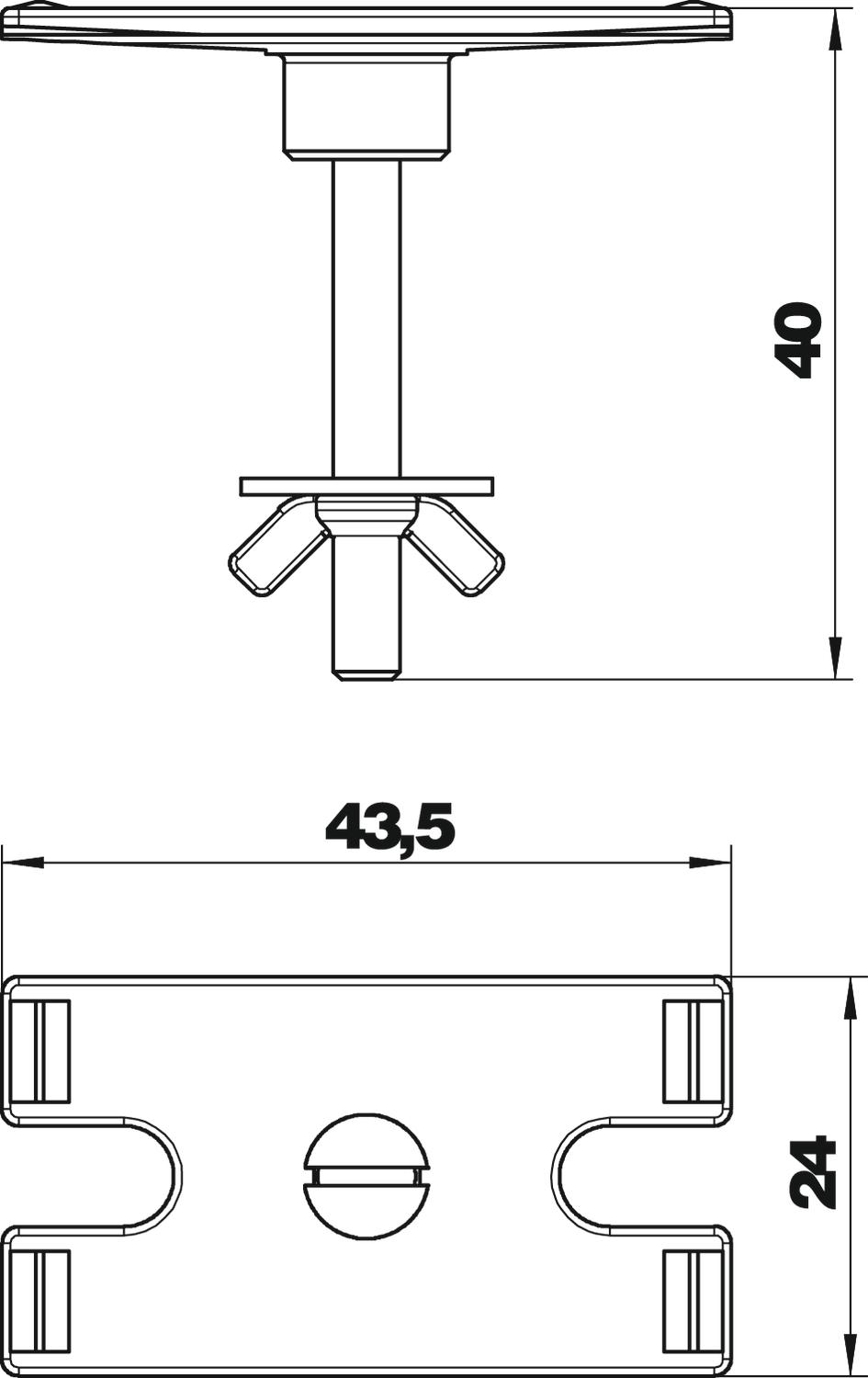 Note: The supplied fastening screws (M4 x 40 mm) can be used for tabletops of up to a maximum thickness of 32 mm.