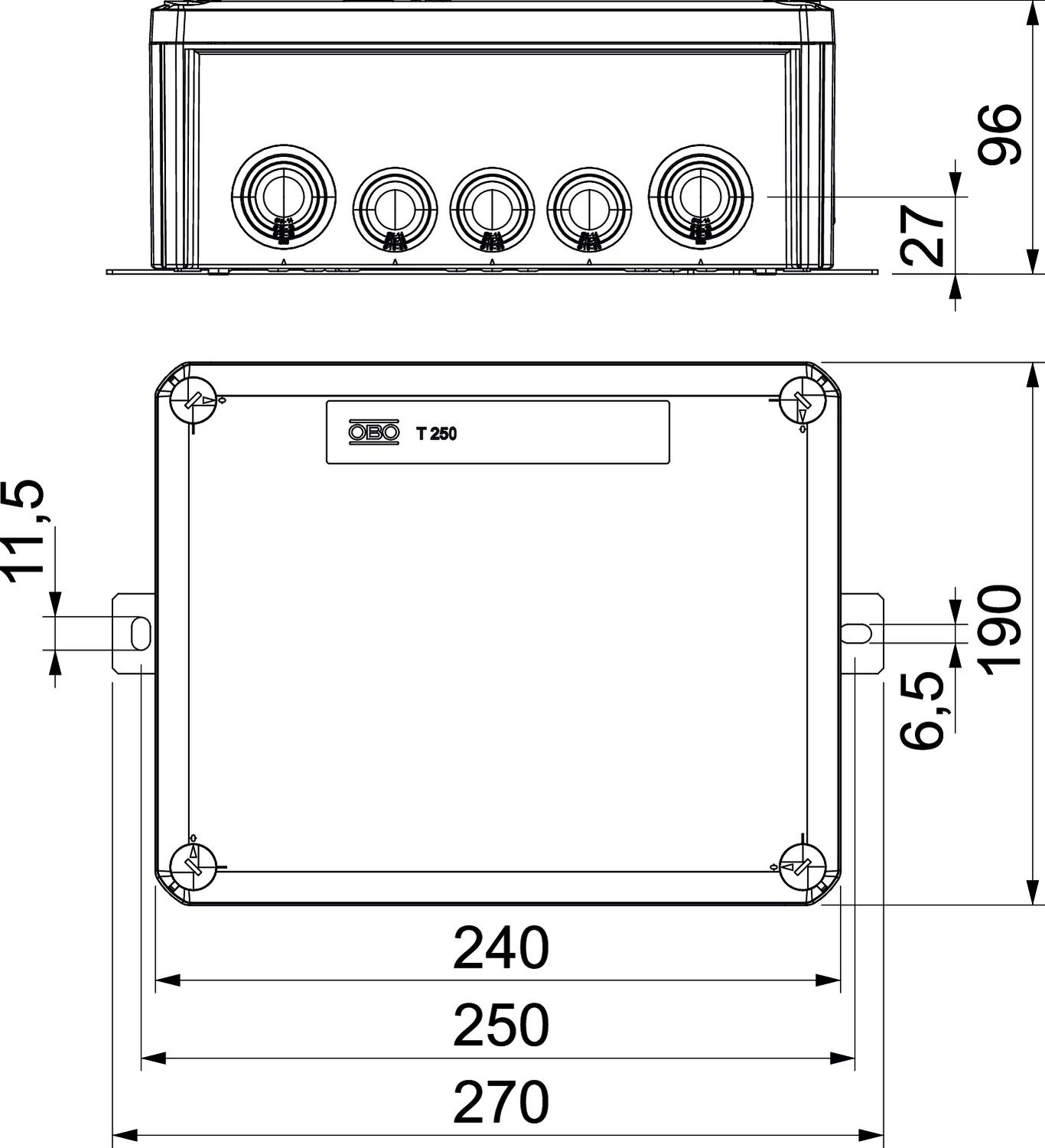 Clear internal dimensions 225x173x86 mm CO2 Footprint (GWP) Cradle-to-Gate 3,3005 kg CO2e / 1 Piece Colour Pastel orange; RAL 2003 Cover Not transparent Cover fastening Screwed Dimension 240x190x95 Dimension B 190 mm Dimension H 95 mm Dimension L 240 mm Dimension L1 250 mm Dimension L2 270 mm Double terminals 3 Entry from rear no Equipment Terminal Expandable no Explosion-tested version no For Ex zone Without For Ex zone dust Without For Ex zone gas Without Halogen-free yes Height 95 mm Impact-resistant no Length 240 mm Maintain electrical functions E 90 Material Polypropylene Nominal cross-section, max. 16 mm² Nominal cross-section, min. 6 mm² Nominal voltage 660 V Number of terminals 7 Protection rating IP66 Protective terminal 1 Sealable no Shape Rectangular Single terminals 3 Transparent lid no Type of housing penetration Cuttable stepped membrane Weatherproof no Width 190 mm with lid yes With screening no - All types