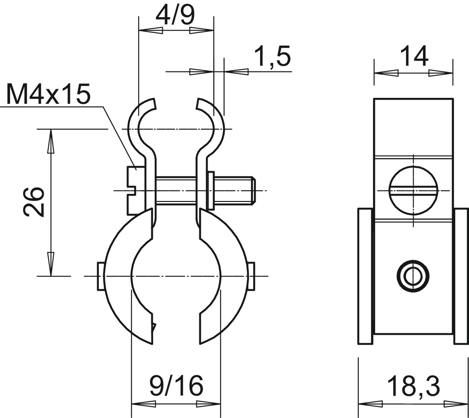 Bolt M4x16 CO2 Footprint (GWP) Cradle-to-Gate 0,0907 kg CO2e / 1 Piece Dimension 9-16mm Dimension A 26 mm Dimension b 14 mm Dimension b1 18,3 mm Material Stainless steel 1.4571 Number of cables/pipes 1 Surface Bright, treated Version for Not insulated - All types