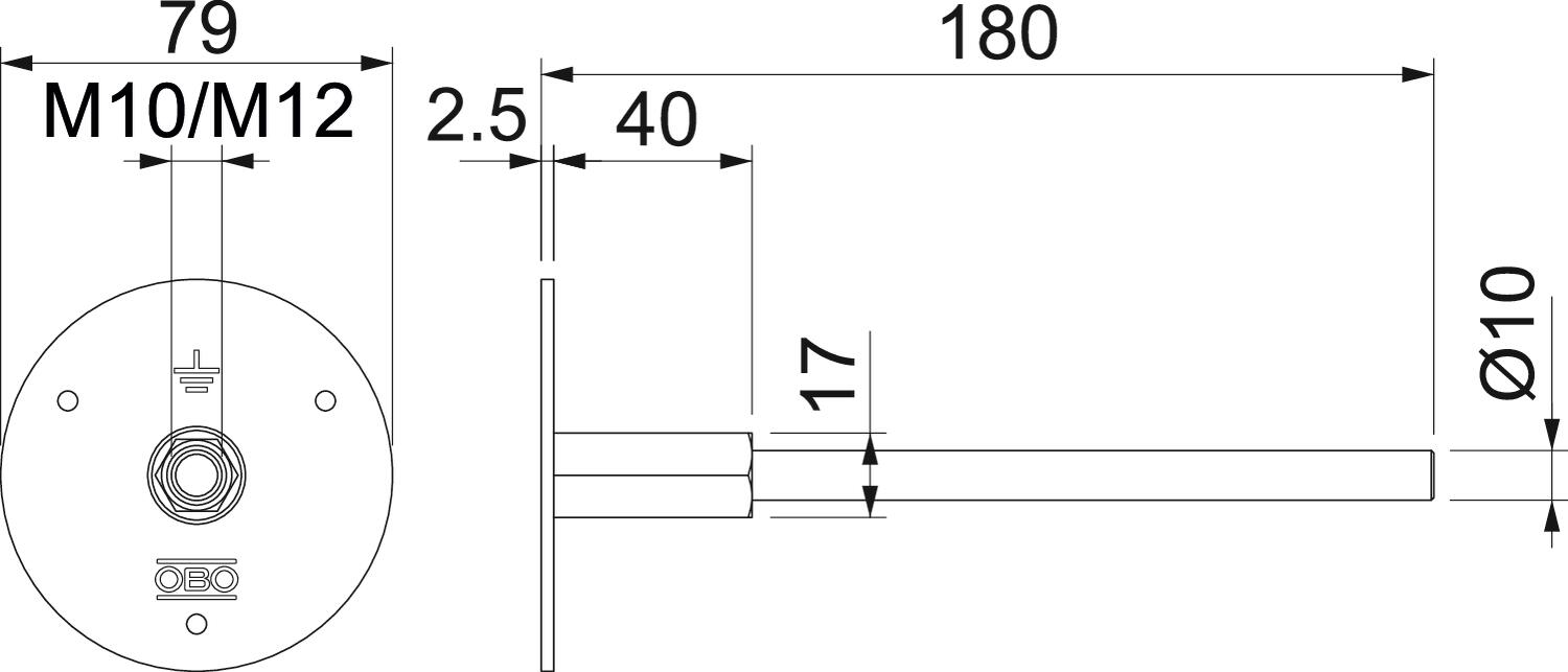 CO2 Footprint (GWP) Cradle-to-Gate 1,2723 kg CO2e / 1 Piece Diameter of the connection bolt 10 mm Diameter of the contact plate 79 mm Dimension M10/M12 Length 180 mm Lightning current carrying capacity H/100 kA Material Steel Material of the connection bolt Steel, hot galvanised Short-circuit current (50 HZ)(1 s;≤300°C) 4,9 kA Surface Hot-dip galvanised Thread M10/M12 - All types