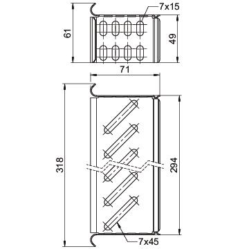 Colour zinc Dimension 60x300 Dimension W 318 mm Height 61 mm Length 71 mm Maintain electrical functions no Material Steel Rustproof steel, pickled no Surface Strip galvanised zinc/aluminium, Double Dip Wide-span version no Width 300 mm - All types