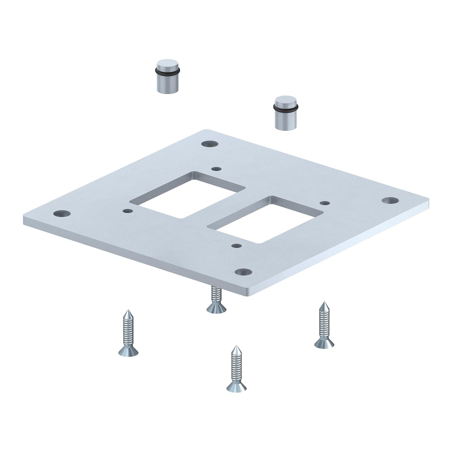 Product descriptionPlate to fasten the ISS industrial pole to the floor. The scope of delivery comprises of four fastening screws to mount the floor plate onto the pole profile and two sealing plugs to make the compressed air channels airtight.