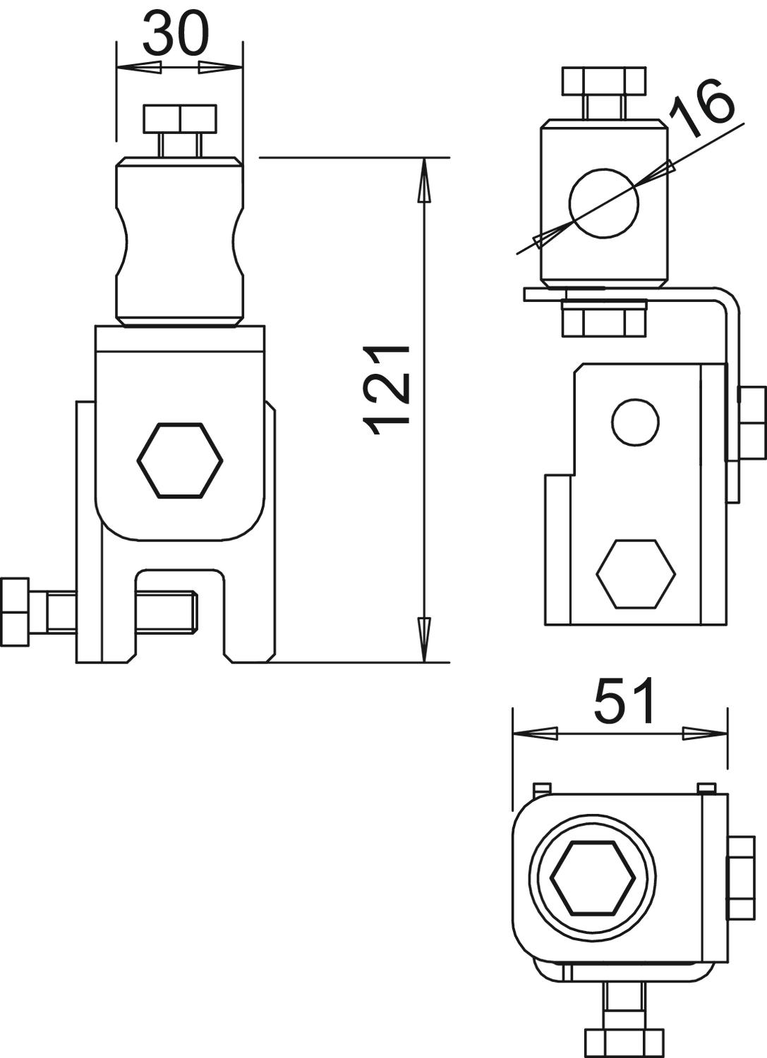 Clamping range, max. 20 mm Clamping range, min. 4 mm CO2 Footprint (GWP) Cradle-to-Gate 2,99 kg CO2e / 1 Piece Dimension 180x60x60 Dimension B 51 mm Dimension d min. 30 mm Dimension d Ø 16 mm Dimension L 121 mm Material Stainless steel 1.4301 - All types
