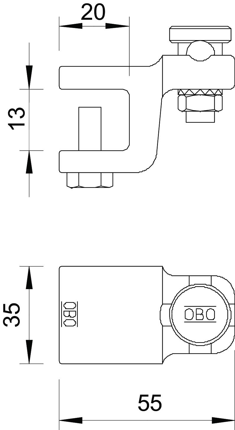 Clamping range, max. 12 mm CO2 Footprint (GWP) Cradle-to-Gate 0,5329 kg CO2e / 1 Piece Dimension 12mm Dimension L 55 mm Dimension t 20 mm Fit Rd 8-10 mm Intermediate plate no Lightning current carrying capacity N/50 kA Material cast steel Suitable for connection Miscellaneous Surface Hot-dip galvanised Type of connector Clamp connector Type of fastening screw Clamping screw - All types