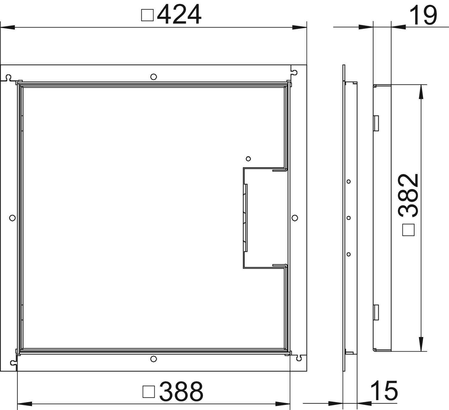 Cable outlet version Swivellable cord outlet CO2 Footprint (GWP) Cradle-to-Gate 28,9295 kg CO2e / 1 Piece Device support to accept mounting boxes no Dimension 383x383x15 Dimension A 424 mm Dimension B 388 mm Dimension C 382 mm Dimension h 15 mm Floor care Dry Floor covering thickness 13 mm Material Stainless steel 1.4301 Number of cable outlets 1 - All types