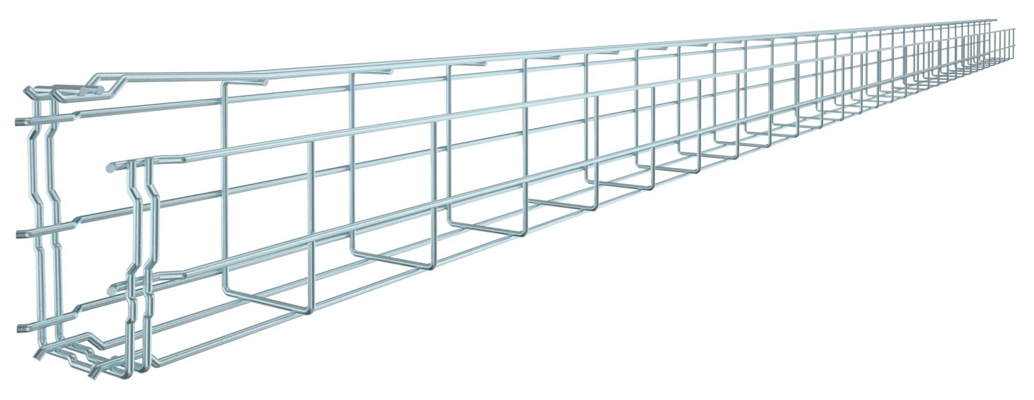 Product descriptionG-shaped mesh cable tray made of spot-welded steel wire with different side heights and widths.
