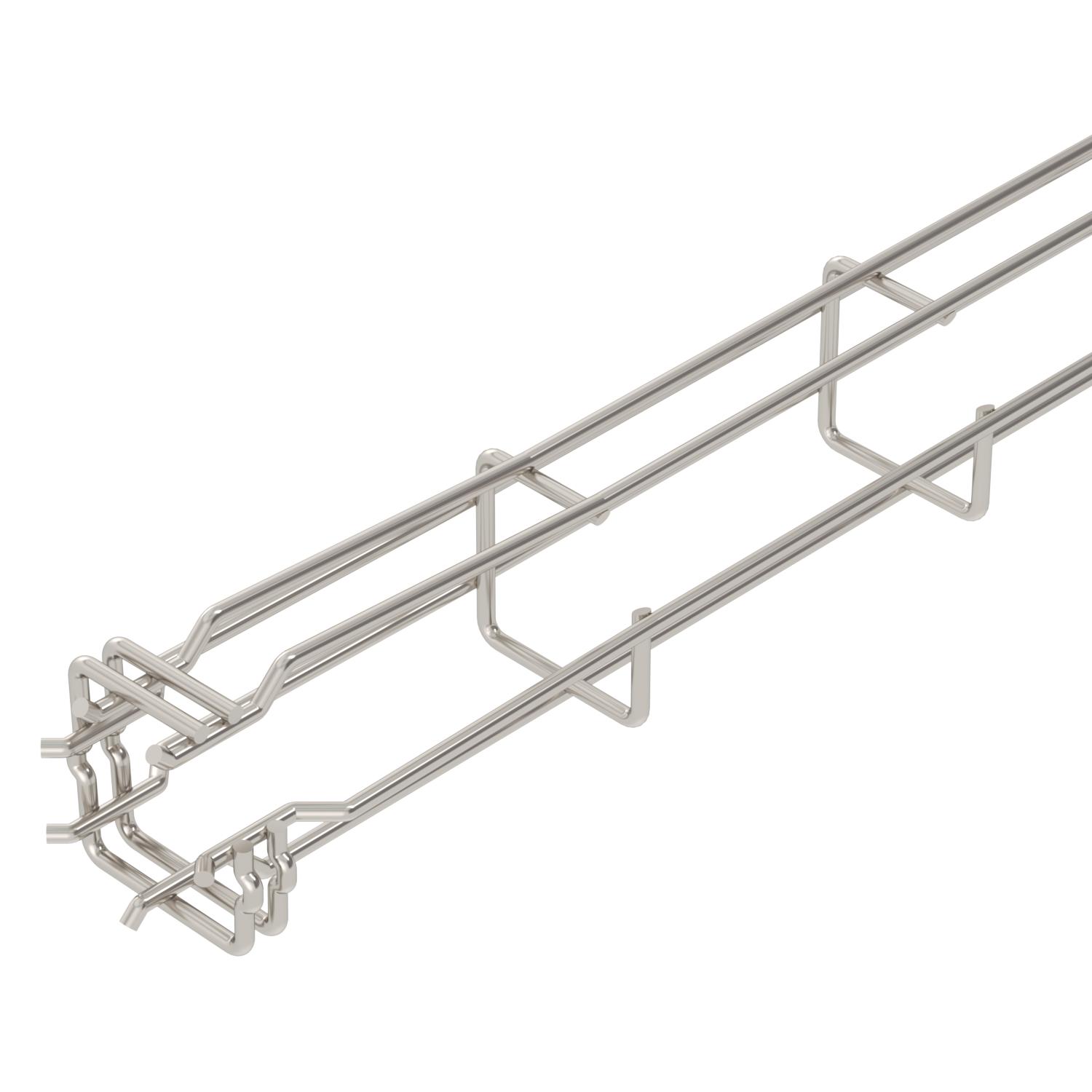 Product descriptionG-shaped mesh cable tray made of spot-welded steel wire with different side heights and widths.