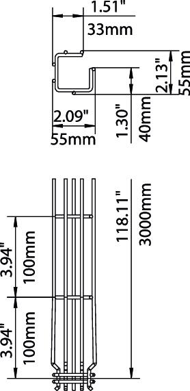 CO2 Footprint (GWP) Cradle-to-Gate 3,4137 kg CO2e / 1 Meter Colour stainless steel Connector version Integrated connector Dimension 50x50x3000 Dimension A 38 mm Dimension B 55 mm Dimension C 33 mm Dimension H 55 mm Height 50 mm Height 1,97 in Integrated partition Without Length 3000 mm Load test type according to IEC 61537 Type II Maintain electrical functions no Material Stainless steel 1.4301 Profile shape G-shaped Rustproof steel, pickled yes Screwless connector yes Surface Bright, treated Type of connector, cable support system Click fastening Usable cross-section 1700 mm² Usable cross-section 17 cm² Wide-span version no Width 1,97 in Width 50 mm Wire diameter 3,9 mm - All types