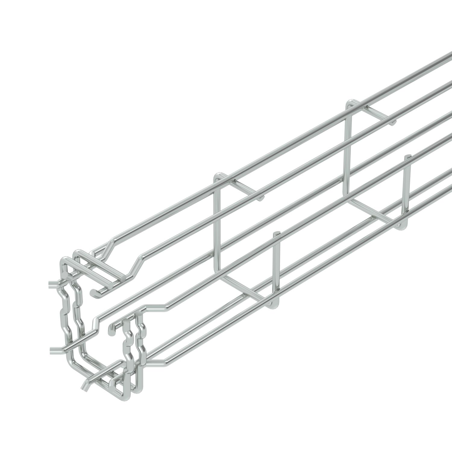 Product descriptionG-shaped mesh cable tray made of spot-welded steel wire with different side heights and widths.