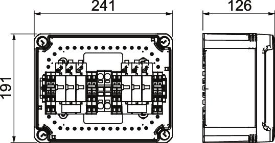 • 2 protection devices with 5 push-in terminals each of up to 6 mm² pre-installed in the housing, up to 41 A DC per terminal