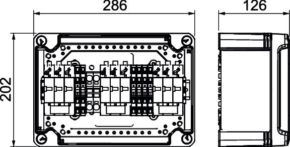 • 3 protection devices with 3 push-in terminals to 6 mm² pre-installed in the housing, to 41 A DC per terminal