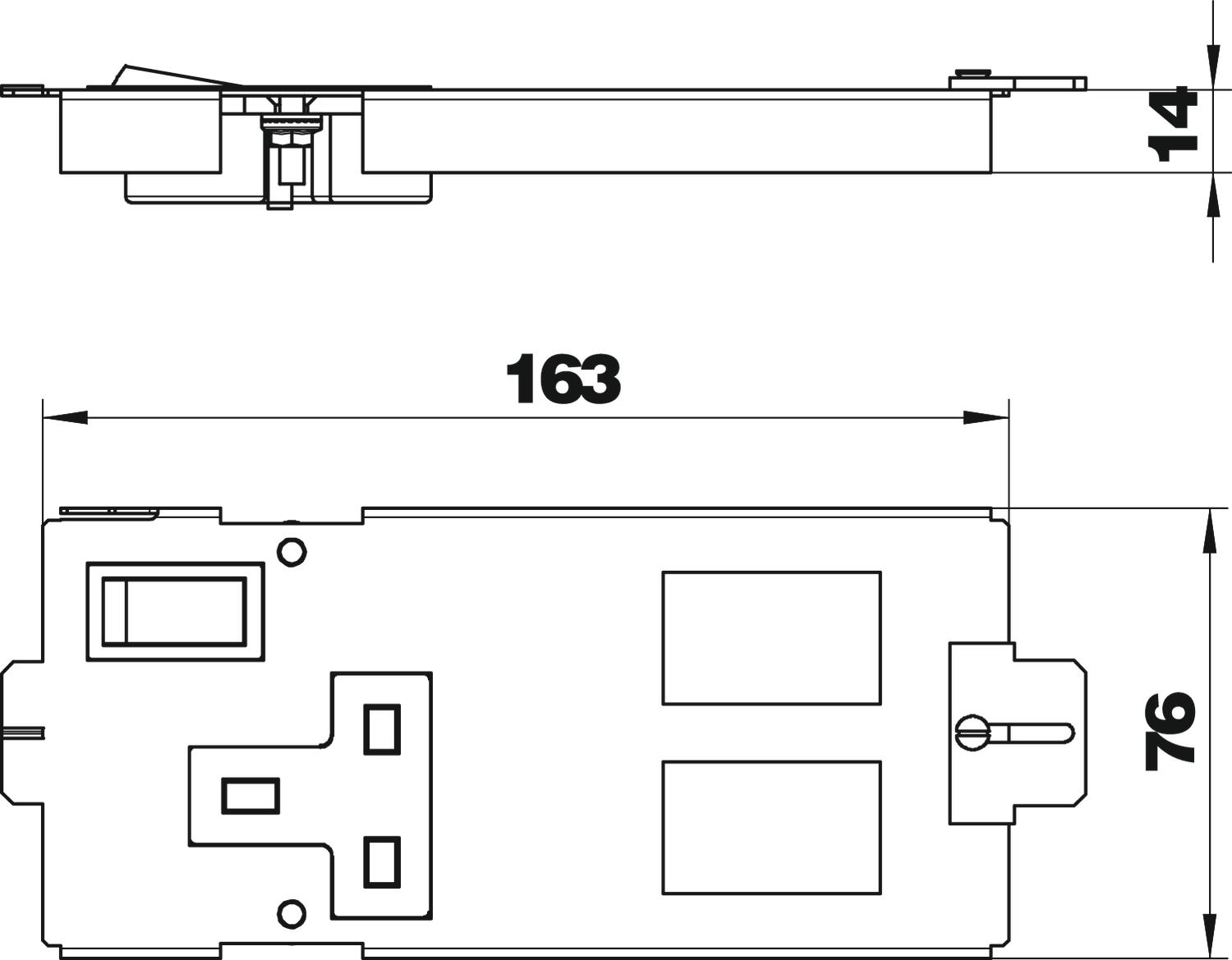 Product descriptionMounting support for installation units of nominal size 2 with mounting single BS socket, type OBO, and 2 mounting openings for data sockets, type LJ6C. Direction of insertion 90°.