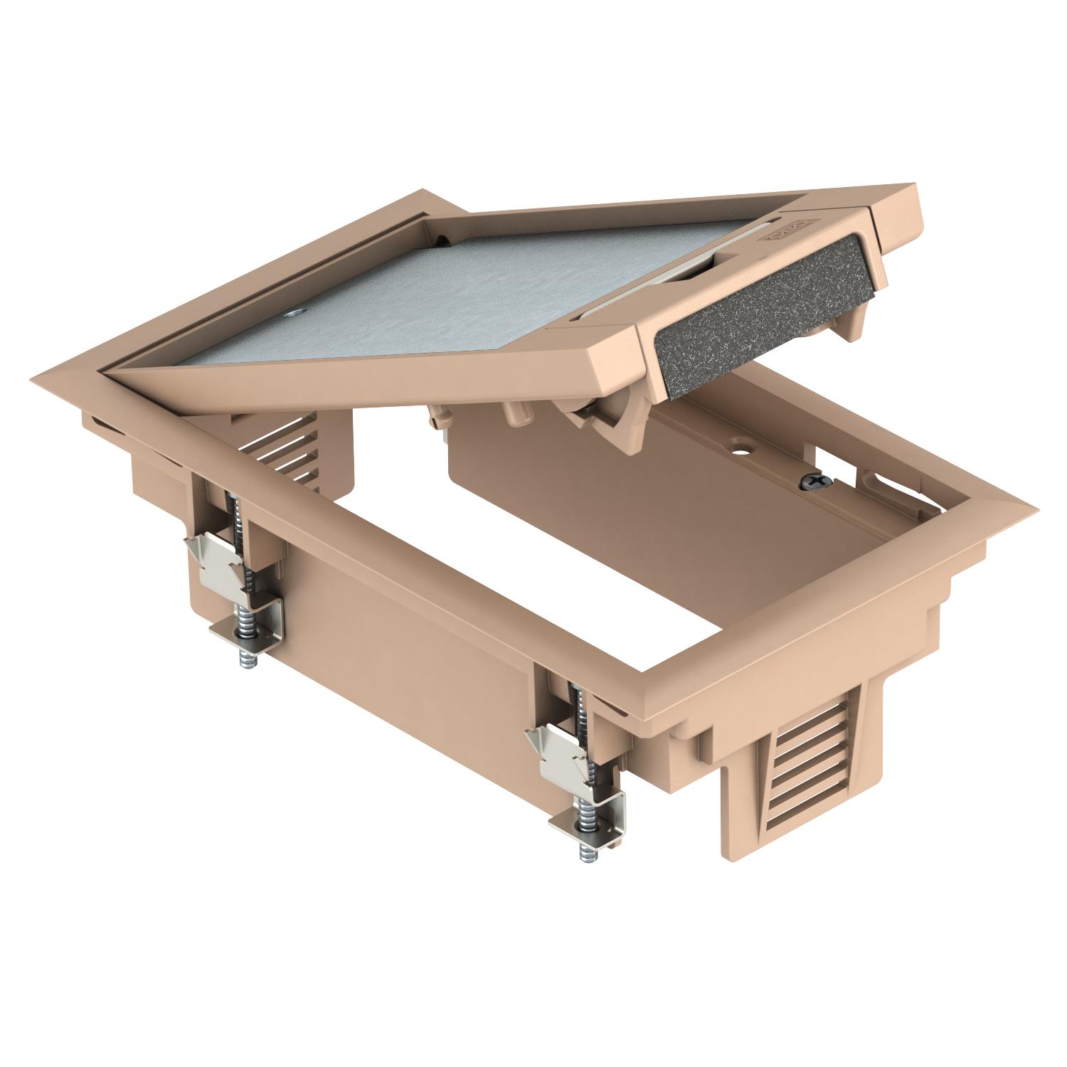 Approvals VDE Cable outlet version Swivellable cord outlet Clamping range D, max. 29 mm Clamping range D, min. 7 mm CO2 Footprint (GWP) Cradle-to-Gate 1,2509 kg CO2e / 1 Piece Colour Grey-beige; RAL 1019 Device support to accept mounting boxes yes Dimension 192x118x61 Floor care Dry Floor covering protection frame yes Floor covering thickness 5 mm Floor height, min. 73 mm Frame version Carpet protection frame Heavy-duty version no Installation depth 73 mm Installation system type UT3 Length of external dimensions 194 mm Length of installation dimensions 180 mm Material Polyamide Nominal size for device installation units 2 Number of installable devices 3 Number of mounting boxes 1 Opening mechanism Handle Protection rating (IP) when unused IP40 Protection rating (IP) when used IP20 Protection rating IK code IK08 Seal installation option no Suitable for cavity floor installation no Suitable for raised floor installation no Suitable for screed-covered underfloor ducts yes Suitable for screed-flush closed underfloor ducts no Suitable for underfloor ducts yes Suitable for wet care no Version for Rectangular Vertical load, large area to 3,000 N Vertical load, small area to 3,000 N Wide external dimensions 118 mm Wide installation dimensions 104 mm With floor covering recess yes - All types