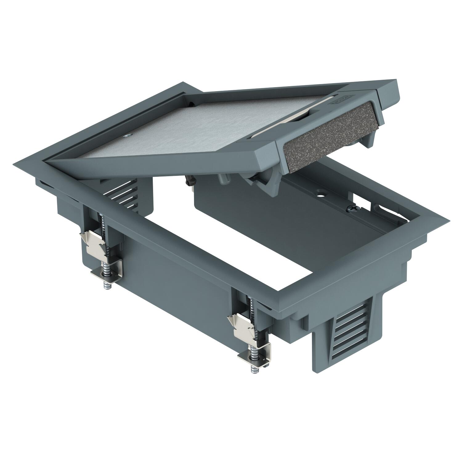 Product descriptionService outlet with handle clamp for up to 3 individual Modul 45 devices in one UT3 universal support, use in duct systems and system floors for indoor use.