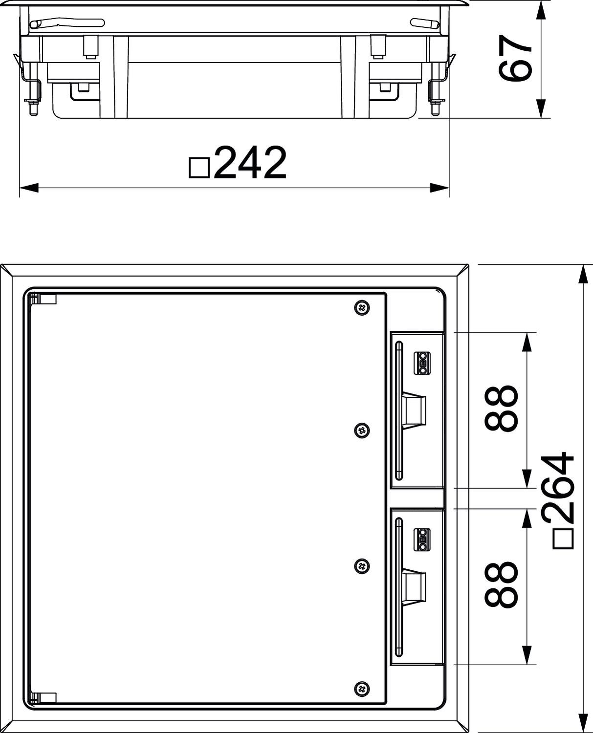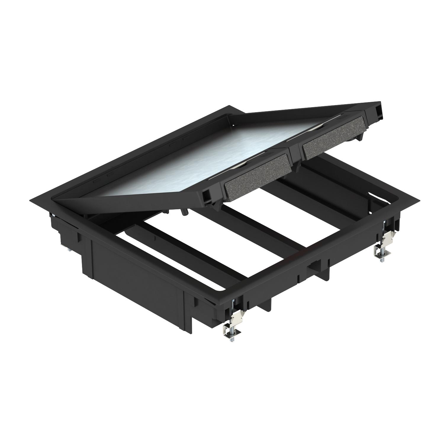 Product descriptionSquare flushfloor installation unit for mounting in an OKA-T trunking system. With mounting support to accept up to three APMT5 cover plates.