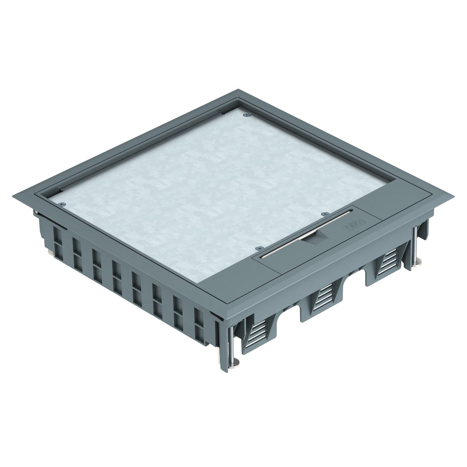 Approvals VDE Cable outlet version Swivellable cord outlet Clamping range D, max. 76 mm Clamping range D, min. 8 mm CO2 Footprint (GWP) Cradle-to-Gate 6,2179 kg CO2e / 1 Piece Colour Iron grey; RAL 7011 Device support to accept mounting boxes yes Dimension 264x264x67 Dimension h 73 mm Floor care Dry Floor covering protection frame yes Floor covering thickness 5 mm Floor covering thickness max. 10 mm Floor height, min. 73 mm Frame version Carpet protection frame Heavy-duty version no Height 67 mm Installation depth 73 mm Installation system type UT4 Length 264 mm Length of external dimensions 264 mm Length of installation dimensions 244 mm Material Polyamide Nominal size for device installation units 9 Number of installable devices 12 Number of mounting boxes 3 Opening mechanism Handle Protection rating (IP) when unused IP40 Protection rating (IP) when used IP20 Protection rating IK code IK08 Seal installation option no Suitable for cavity floor installation yes Suitable for raised floor installation yes Suitable for screed-covered underfloor ducts yes Suitable for screed-flush closed underfloor ducts no Suitable for underfloor ducts yes Suitable for wet care no Version for Square Vertical load, large area to 5,000 N Vertical load, small area to 3,000 N Wide external dimensions 264 mm Wide installation dimensions 244 mm Width 264 mm With floor covering recess yes - All types