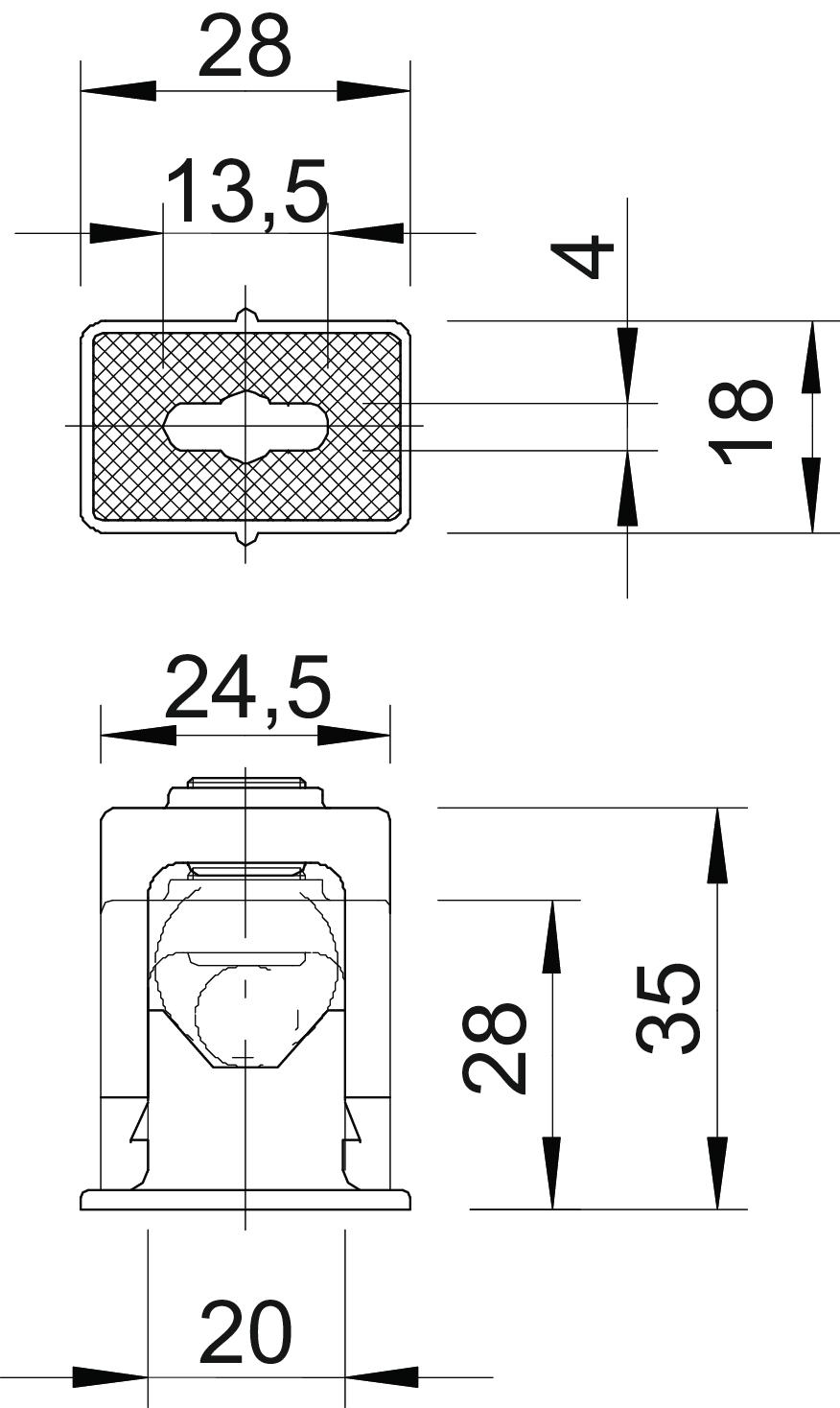Product descriptionSolid cable fastening through clamping screws, with adhesive base, slot and for screwing to M6 thread.