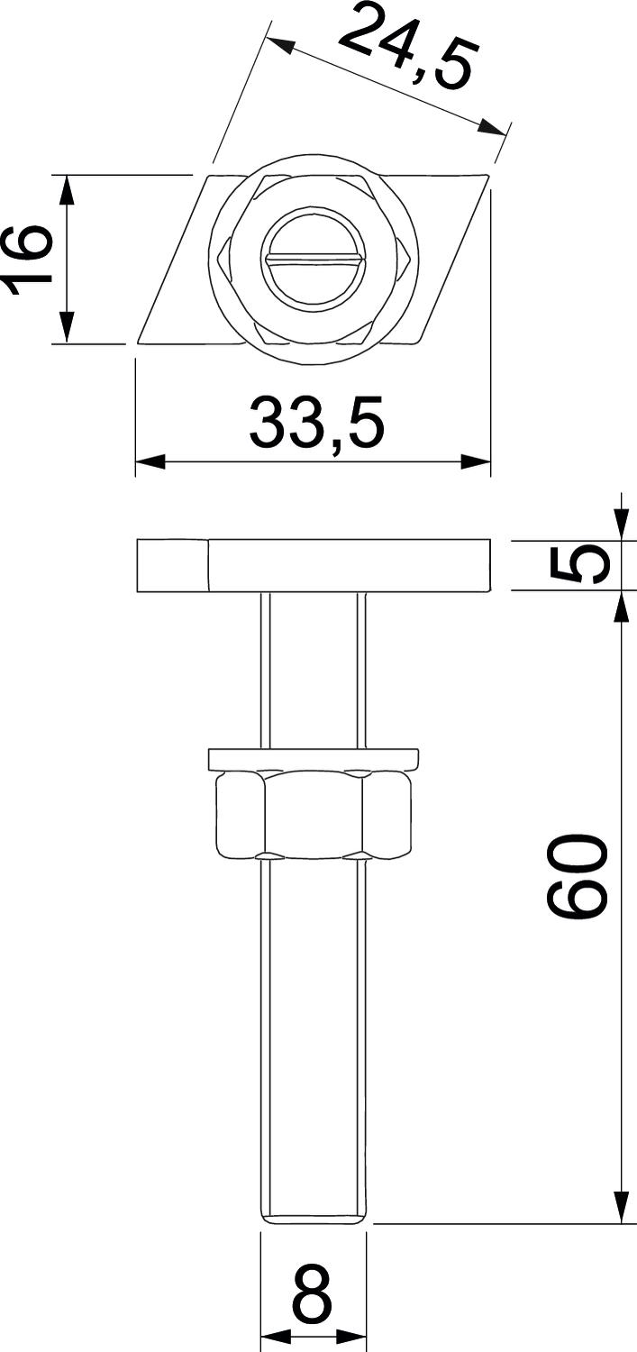 CO2 Footprint (GWP) Cradle-to-Gate 0,2232 kg CO2e / 1 Piece Dimension M8x60mm Dimension L 60 mm Height 5 mm Length 33,5 mm Material Stainless steel Suitable for mounting rail yes Surface Bright, treated Thread M 8 x 60mm Thread metric 8 Width 16 mm - All types