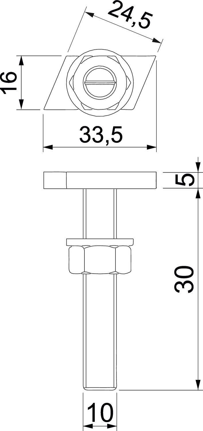 CO2 Footprint (GWP) Cradle-to-Gate 0,2397 kg CO2e / 1 Piece Dimension M10x30mm Dimension L 30 mm Height 6 mm Length 33,5 mm Material Stainless steel Suitable for mounting rail yes Surface Bright, treated Thread M 10 x 30mm Thread metric 10 Width 16 mm - All types
