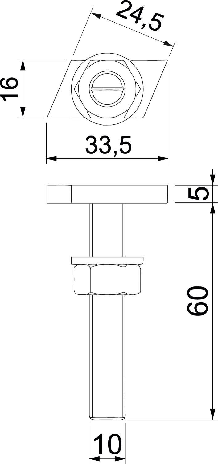 CO2 Footprint (GWP) Cradle-to-Gate 0,3265 kg CO2e / 1 Piece Dimension M10x60mm Dimension L 60 mm Height 6 mm Length 33,5 mm Material Stainless steel Suitable for mounting rail yes Surface Bright, treated Thread M 10 x 60mm Thread metric 10 Width 16 mm - All types