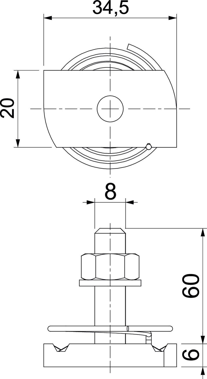 CO2 Footprint (GWP) Cradle-to-Gate 0,3029 kg CO2e / 1 Piece Dimension M8x60mm Dimension H 6 mm Dimension L 60 mm Height 6 mm Length 34,5 mm Material Stainless steel Suitable for mounting rail yes Surface Bright, treated Thread M 8 x 60 Torque 6,2 Nm Washer Ø 16 mm Width 20 mm - All types