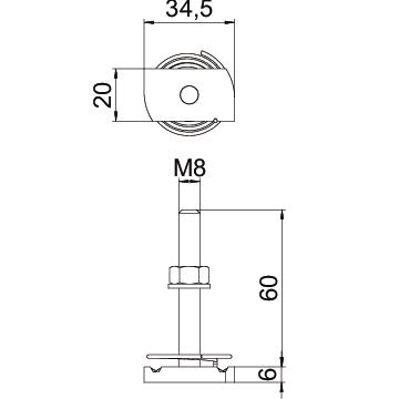 CO2 Footprint (GWP) Cradle-to-Gate 0,178 kg CO2e / 1 Piece Dimension M8x60mm Dimension H 6 mm Dimension L 60 mm Height 20 mm Length 66 mm Material Steel Suitable for mounting rail yes Surface Zinc slat Thread M8x60 Thread metric 8 Torque 8 Nm Washer Ø 16 mm Width 35 mm - All types