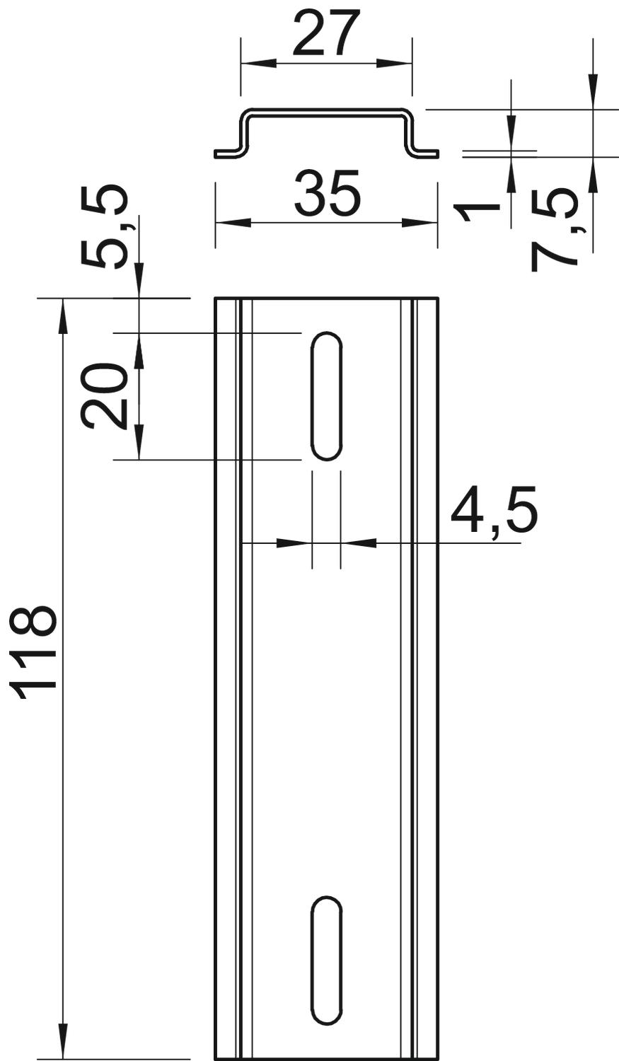 Product descriptionHat profile rail 35 x 7.5 mm to DIN EN 60715 (formerly DIN EN 50022).