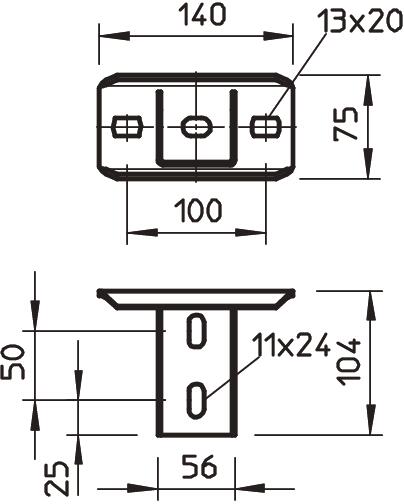 Product descriptionHead plate for mounting on US 5 supports. In combination with the US 5 support, suspended supports of any length can be created in situ. Also suitable for fixing vertical ladders, type SLM 50.