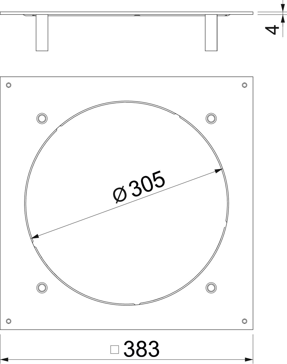 CO2 Footprint (GWP) Cradle-to-Gate 15,7498 kg CO2e / 1 Piece Dimension 382x382x59 Dimension A 383 mm Dimension d Ø 305 mm Floor care Dry Heavy-duty version yes Installation opening for on-floor tank no Length 383 mm Material Steel Material thickness 4 mm Mounting opening Round Mounting opening cover no Nominal size 350 mm Nominal size for device installation units R9 Seal installation option no Suitable for screed-covered underfloor ducts yes Suitable for screed-flush closed underfloor ducts no Surface Strip galvanized Width 383 mm - All types